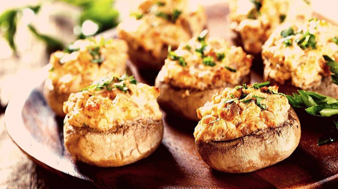 - Stuff each mushroom cap with the filling mixture and place them on a greased baking sheet. Bake for 15-20 minutes, or until the mushrooms are tender and the cheese is melted.
